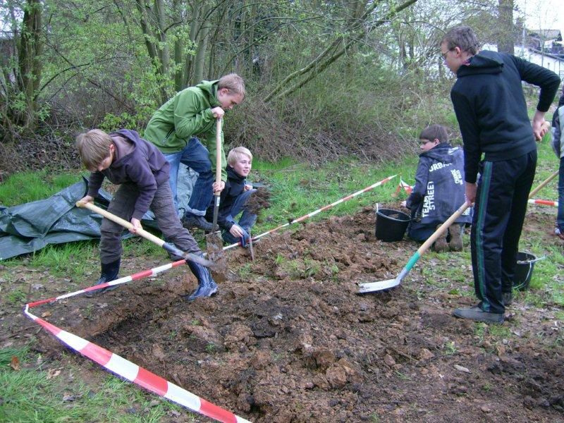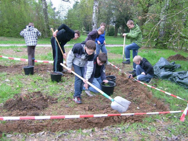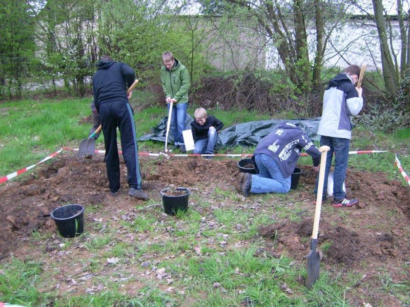 Am 03.05.2013 konnten die Schüler auf dem Schulgelände ihre „Grabungsfläche“ eröffnen. Nun heißt es Graben, Dokumentieren und Zeichnen.