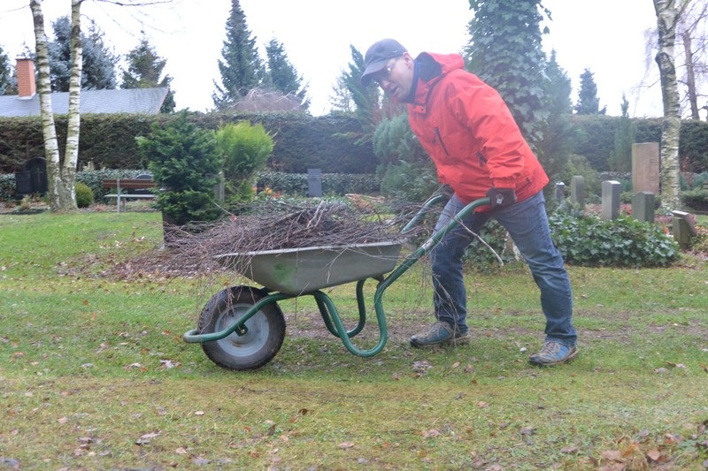 Auf der 5 * 4 m großen Fläche haben die Schüler damit begonnen, eine Spatentiefe sich vor zu arbeiten. Dabei erkannte man sehr schnell, dass der Abraum beseitigt werden muss, bevor er festgetreten wird...