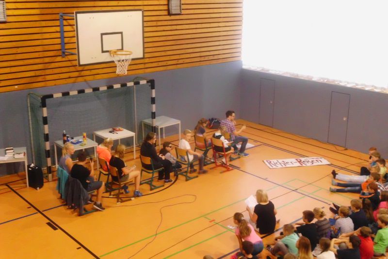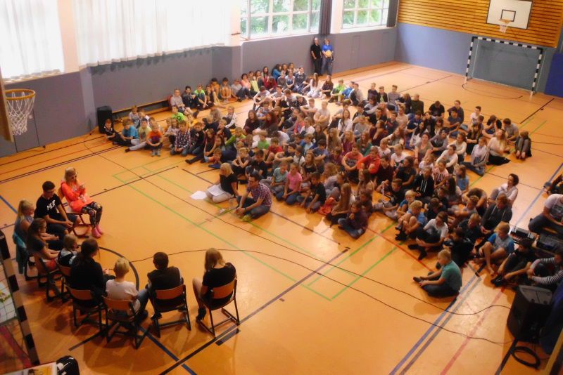 Am Montag, den 5.09.2016 führte die Theater-AG des Evangelischen Gymnasiums Leukersdorf ein selbstgeschriebenes Stück namens „Wahre Freundschaft“ zur Morgenandacht in der Turnhalle auf.