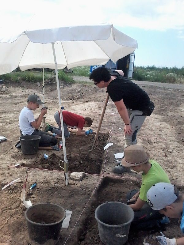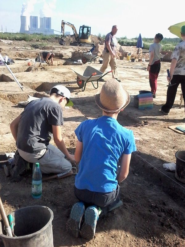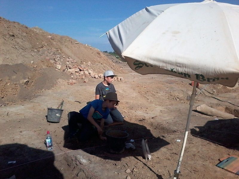Auch diesmal waren sechs Schüler aus den Klassen 5 und 6 im Archäologen-Team mit eingebunden. Südlich von Leipzig kommen im Vorfeld der Braunkohletagebauarbeiten viele Fundstellen ans Tageslicht, die sonst unter Feldern und Wiesen verborgen geblieben wären.