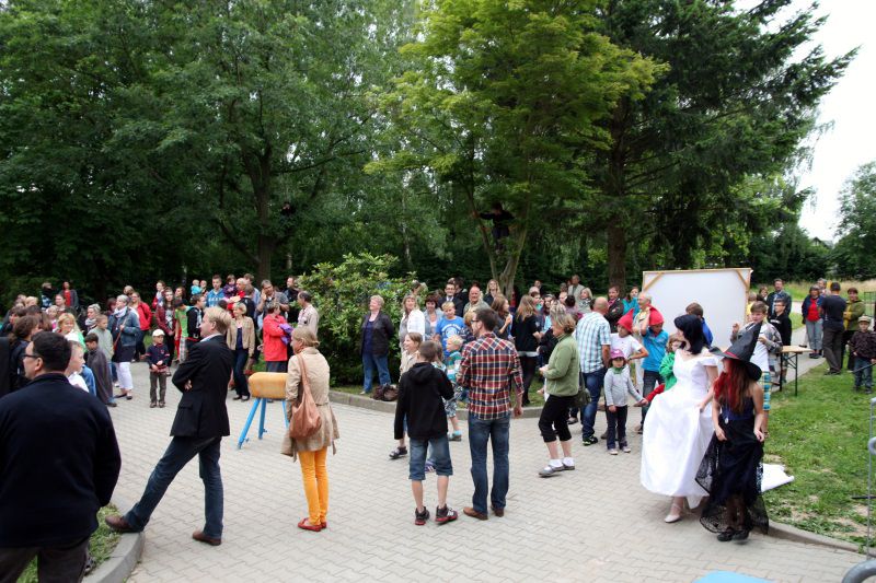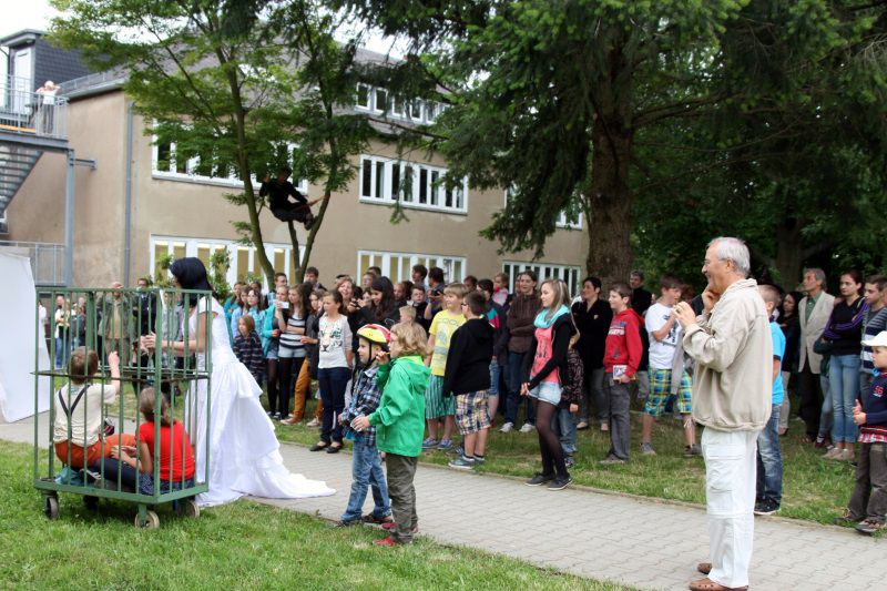 Die Theatergruppe der Schule brachte mit der von der Theater-AG selbst geschriebenen Aufführung „Märchen voll verrückt“ die Gäste mit originellen Dialogen, schauspielerischem Talent und lustigen Kostümen zum Lachen. Die Bläser der Landeskirchlichen Gemeinschaft sorgten für die musikalische Umrahmung der Veranstaltung. Außerdem konnte jeder seine Treffsicherheit beim Torwand – und Bogenschießen ausprobieren.
