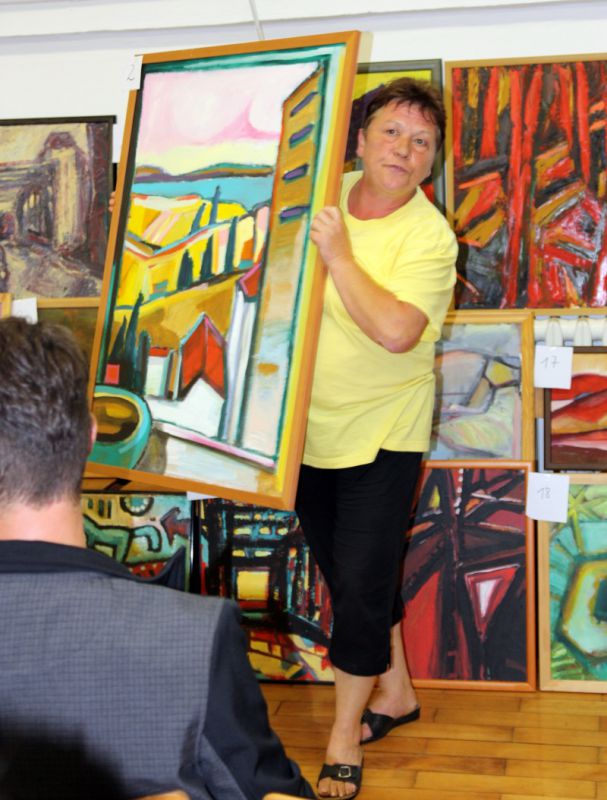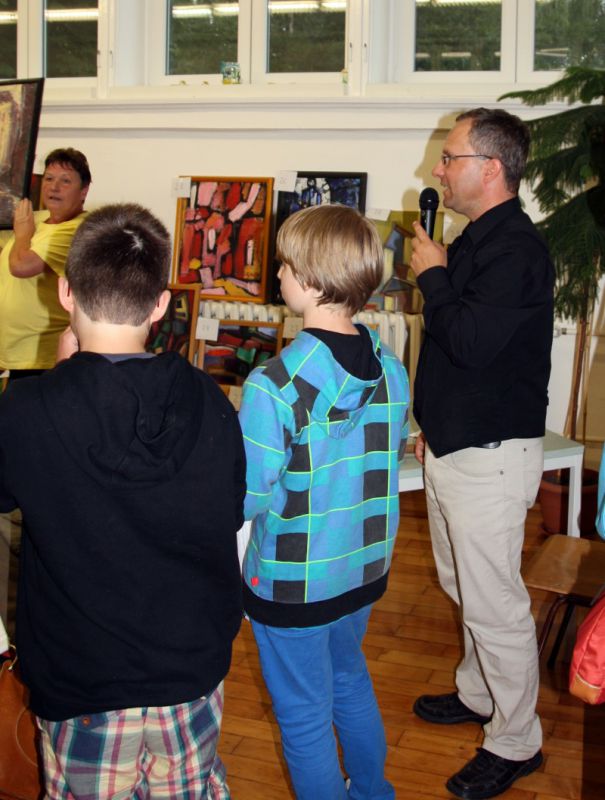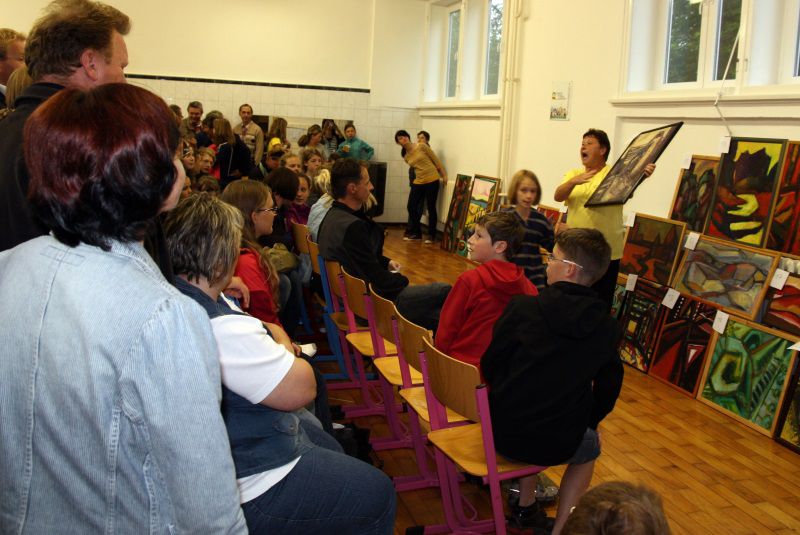 Ein ganz besonderes Highlight des Abends war die Bilder – Auktion von unserem Kunstlehrer. Herr Other versteigerte 29 selbst gemalte Bilder. Dabei gab es sehr viel Spaß, und am Ende nahmen die Meistbietenden stolz einen echten „Other“ mit nach Hause. Die Auktion erbrachte einen Ertrag von 644 Euro, die Herr Other der Schule spendete.