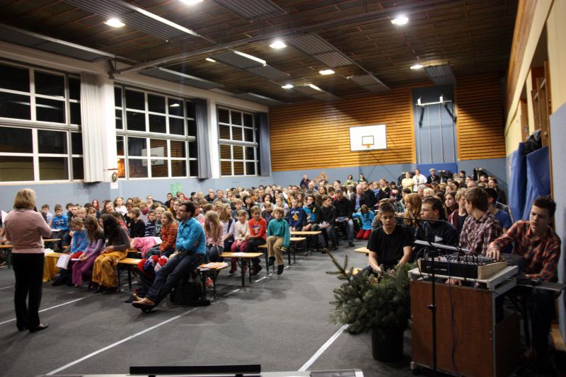 Die diesjährige Andacht wurde feierlich von Frau Dr. Willuhn-Wolff in der voll besetzten Turnhalle eröffnet. Unterstützt wurde sie hierbei durch die Schülerinnen und Schüler der Klassenstufen 5 und 6. Ob am Klavier, an der Geige, am Fagott oder durch das gemeinsame Singen der beiden Klassen.