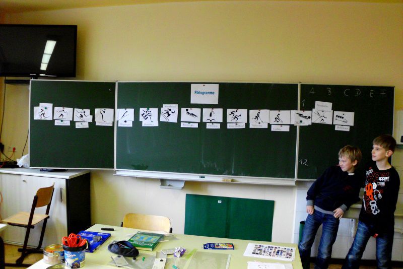 Die diesjährige Projektwoche stand unter dem Thema „Olympia“ und lag damit genau in dem Zeitraum, in welchem im russischen Sotschi die Olympischen Winterspiele stattfanden. An insgesamt elf Stationen konnten die Schüler des Ev. Gymnasium Leukersdorf das Projektthema entdecken. Zum Einstieg gab es ein gemeinsames Schlittschuhlaufen in Chemnitz