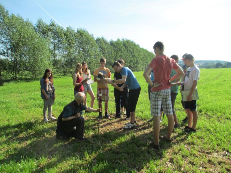 Mit Hilfe eines Bohrstocks führten wir zwei Bodenbohrungen durch. So konnten wir die Sektionen des Bodens entdecken. Durch verschiedene Methoden, bei denen man sich auch die Hände schmutzig machen musste, konnten wir die Bodenart bestimmen. Unsere Ergebnisse hielten wir auf verschiedenen Arbeitsblättern fest, die wir nun im Profilunterricht in Form eines Bodenpraktikums auswerten.