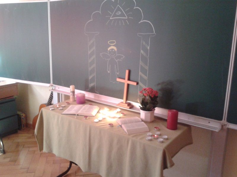 In Eigenregie wurden Lieder von einer kleinen Band begleitet, ein Altar errichtet, die Tische in Kreuzform gestellt usw.