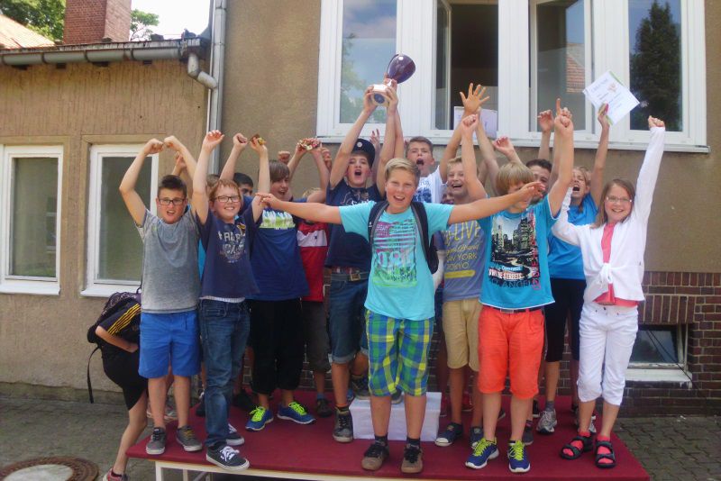 Beim Sportfest wurden jeweils die Klassenbesten in den Disziplinen Weitsprung, Weitwurf, Kugelstoßen und Sprint gekürt. Höhepunkt war dann der Kampf um den beliebten Wanderpokal. Nach vier verschiedenen Staffelspielen gelang es diesmal der 6. Klasse den Pokal zu erobern.