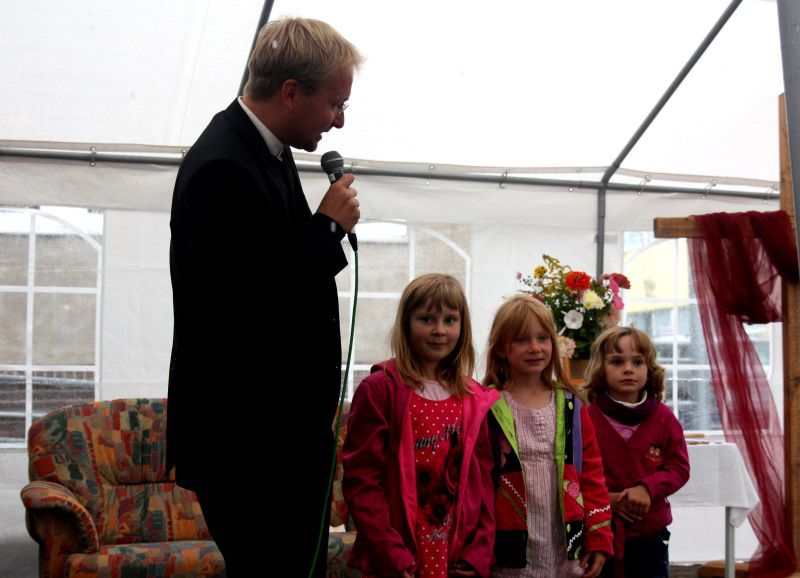 Doch es hatte alles seine Ordnung: Mit einem Anspiel begann der Gottesdienst zum Schulstart am 31.8.2014 auf dem Gelände des Evangelischen Gymnasiums Leukersdorf. Miteinander redeten die „Couch“, ein gestresster „Lehrer“ und eine gelangweilte „Schülerin“. Im Laufe des Dialogs ging Pfarrer Hanitzsch (die „Couch“!) auf die wunderbare Möglichkeit des Lernen-Könnens statt des Lernen-Müssens ein. Mit diesen Gedanken starteten nun 125 Schüler am Gymnasium ins neue Schuljahr. Alle Erstklässler und die neuen 5. Klassen erhielten den Segen für ihren Gang durch´s schulische Leben. Anschließend nahmen sie mit ihren Klassenleitern das neue Domizil in Besitz, während alle übrigen Besucher bei Kaffee und Kuchen den Nachmittag ausklingen lassen konnten.