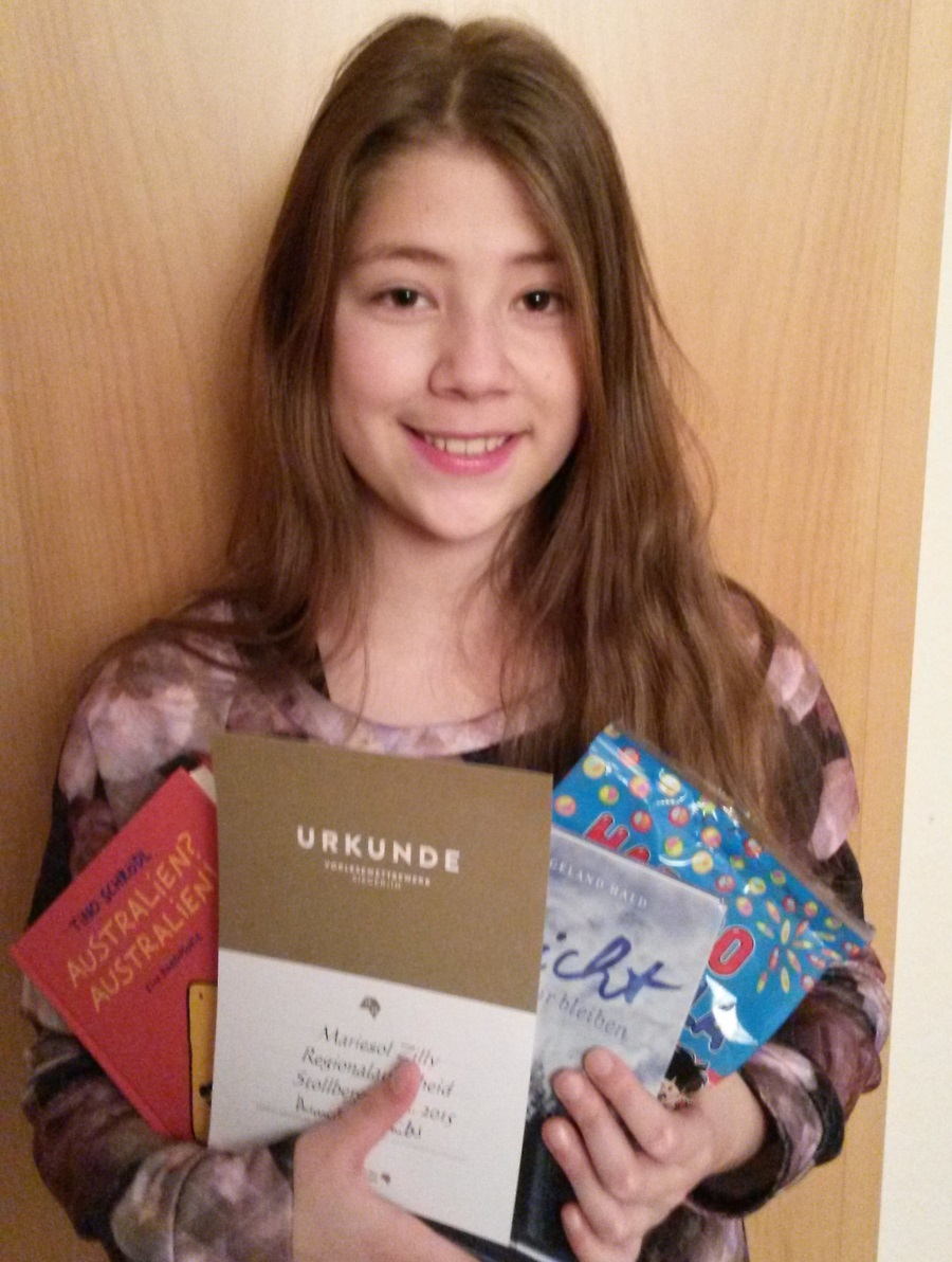 Marisol Zilly aus der 6. Klasse errang beim Regionalausscheid des bundesweiten Vorlesewettbewerbes in Stollberg den 1. Platz. Damit hat sie sich weiterqualifiziert und wird das Evangelische Gymnasium Leukersdorf auch beim nun folgenden Bezirksausscheid vertreten. Wir freuen uns sehr darüber und gratulieren zu dieser hervorragenden Leistung.sieger VWSieger des Regionalausscheids des bundesweiten Vorlesewettbewerbes