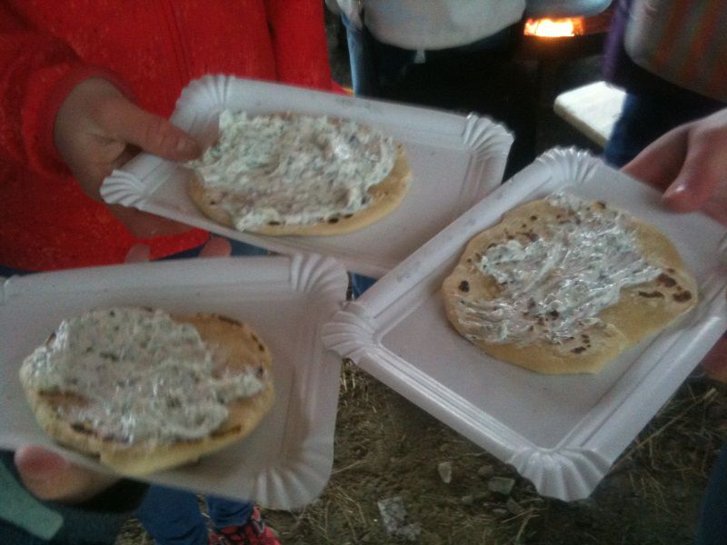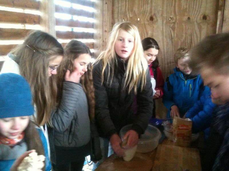 Nach einem gemütlichen Klassenfrühstück fuhren die Klassen 5 bis 7 am letzten Tag vor den Osterferien nach Brünlos in den Bibelgarten.  An drei Stationen konnten wir uns in das Leben zur Zeit Jesu einfühlen. Ein Höhepunkt war dabei das Kneten von Brotteig aus Wasser, Mehl und Salz. Die Fladen wurden anschließens über dem Feuer gebacken und noch warm, bestrichen mit köstlichem Kräuterquark, verspeist.