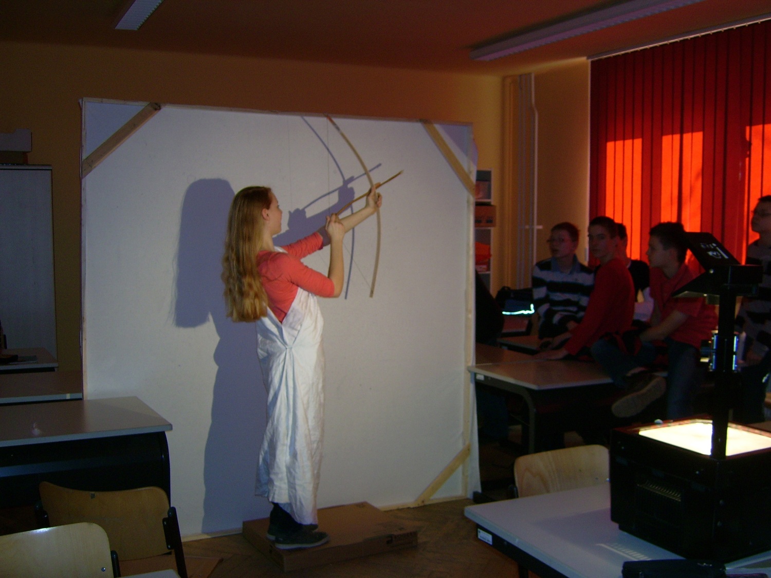 Im Kunstunterricht der Klasse 7 beschäftigten sich die Schüler mit Kunstwerken und Künstlern der Renaissance. Um die Erhabenheit und Schlichtheit eines „David“ aus der Hand Michelangelos nachzuvollziehen, versuchten sich die Siebtklässler selbst als „Marmorskulptur“ – hinter der Leinwand… Dabei galt es, Haltung und Gestus einer „heldenhaften“ antiken oder biblischen Person zu treffen. Ratet mal, wen wohl die Mirjam darstellen wollte…?!