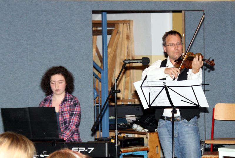 Nachdem die Direktorin Frau Dr. Willuhn-Wolff alle Gäste herzlich begrüßt hatte, eröffneten Herr Other (Geige) und Patricia (Keyboard) mit dem Musikstück „Ave Maria“ die Andacht.