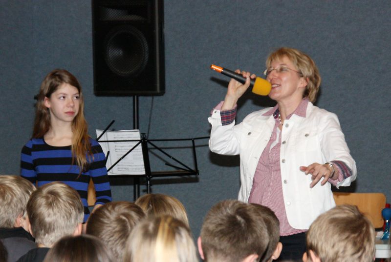 Die Klasse 5 begeisterte mit „Geh` ruft es auf dem Berge“, begleitet von einer Schülerin mit Querflöte.