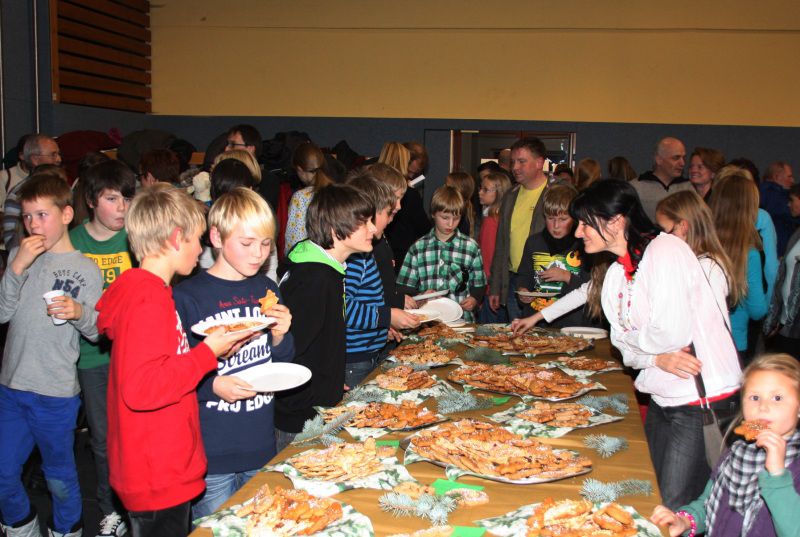 Ein kleiner Imbiss aus selbstgebackenen (in der Bäckerei Seifert) Pfefferkuchen mit heißen /kalten Getränken bot Gesprächsmöglichkeiten zwischen Eltern, Lehrern, … und rundete den Nachmittag ab.