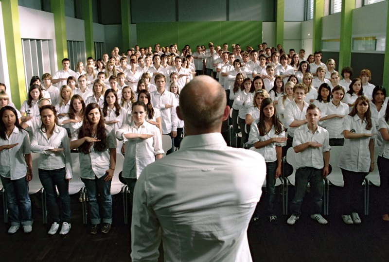 "Die Welle", ein Film aus dem Jahr 2008, der anhand eines pädagogischen Experimentes zeigt, wie autoritäre gesellschaftliche Strukturen entstehen und warum deutsche Gymnasiasten auch im Jahr 2008 noch anfällig für totalitäre Ideologien sind. Der Film versucht eine Antwort auf die Frage zu geben, warum sich die Deutschen im Dritten Reich nicht gegen das autoritäre, brutale Naziregime gewehrt haben.