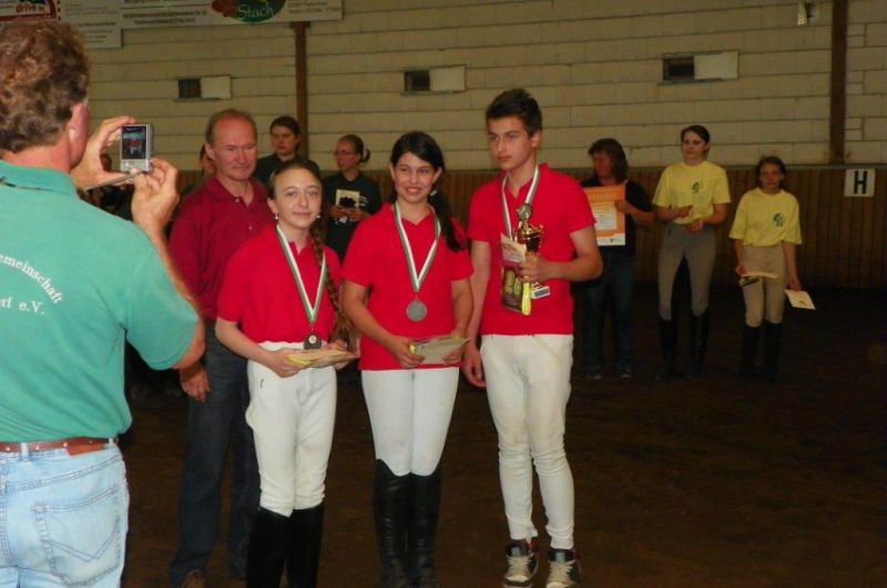 Die Reitermannschaft des evangelische Gymnasiums Leukersdorf hat am Sonnabend (22.6.2013) im Landesfinale Schulwettbewerb Reiten in der Kategorie „Klassenstufe 5-10, fortgeschrittene Reiter (B2)“ den zweiten Platz belegt.